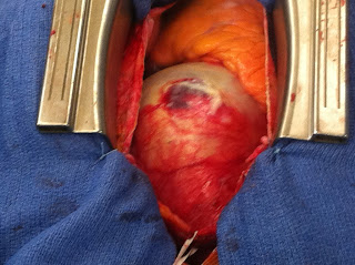 Grâce à mon anesthésiste préféré, voici une petite photo de la bête, l’aorte est monstrueuse, avec une paroi déjà hémorragique et prête à rompre…