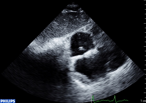 Et mon tout est une cardiopathie restrictive hospitalisée pour insuffisance cardiaque, et qui ressemble diablement aux petits copains du dessus! L’aspect granité, l’infiltration diffuse du septum, la dilatation auriculaire, tout y est, même l’épaississement du septum inter auriculaire!