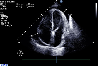 Même si il est difficile de sortir un échographiste de son rôle de contemplateur, c’est possible. Après avoir injecté quelques bulles pour s’assurer d’être dans le péricarde, on passe un guide métallique (pas trop loin le guide, Nico, stp…)